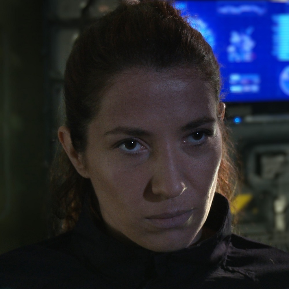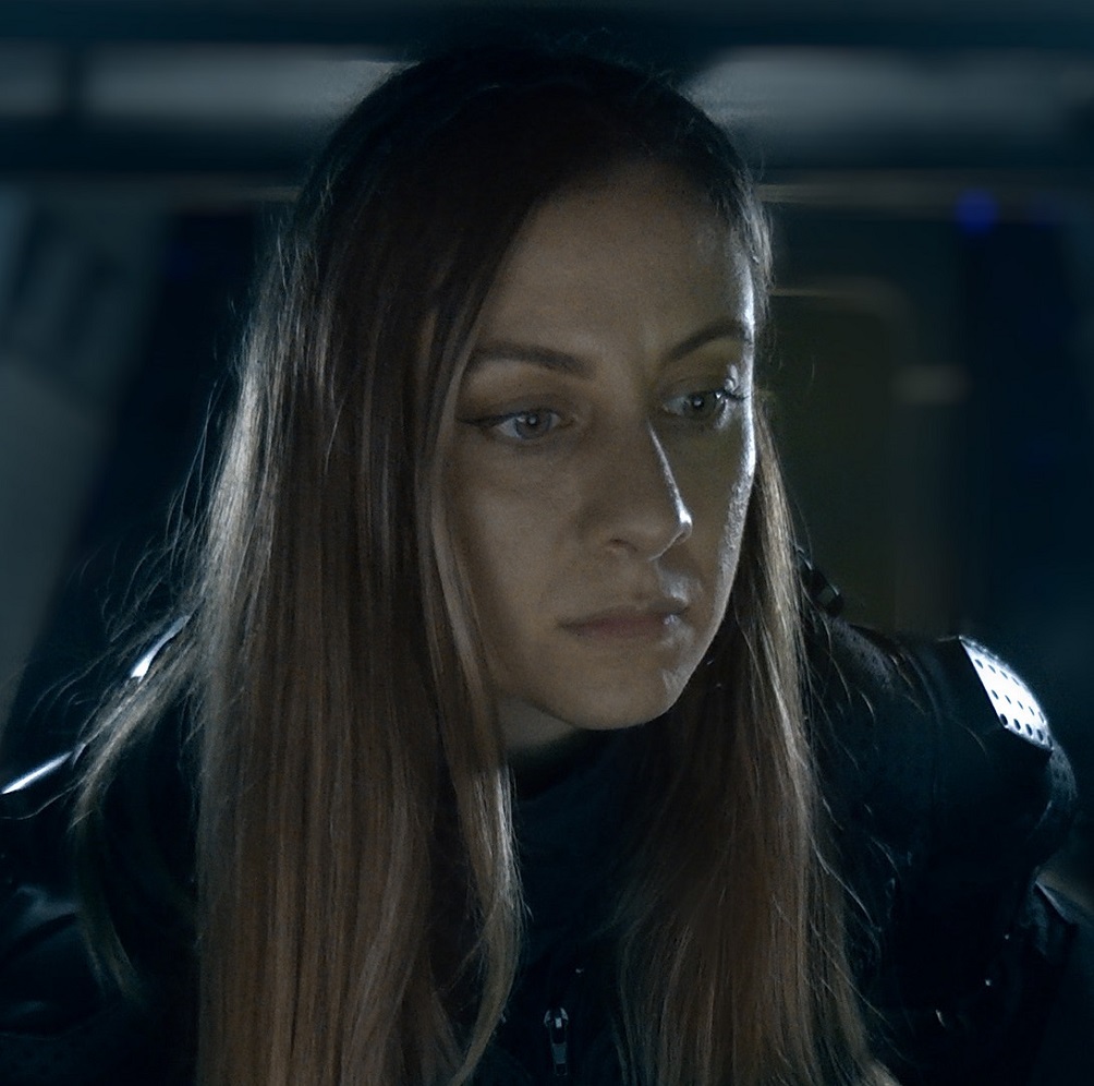 Trudy (Georgia Anastasia), a resourceful addition to the Galumpkis crew. She desperately wants the freedom and security that wealth from alien technology could give her.